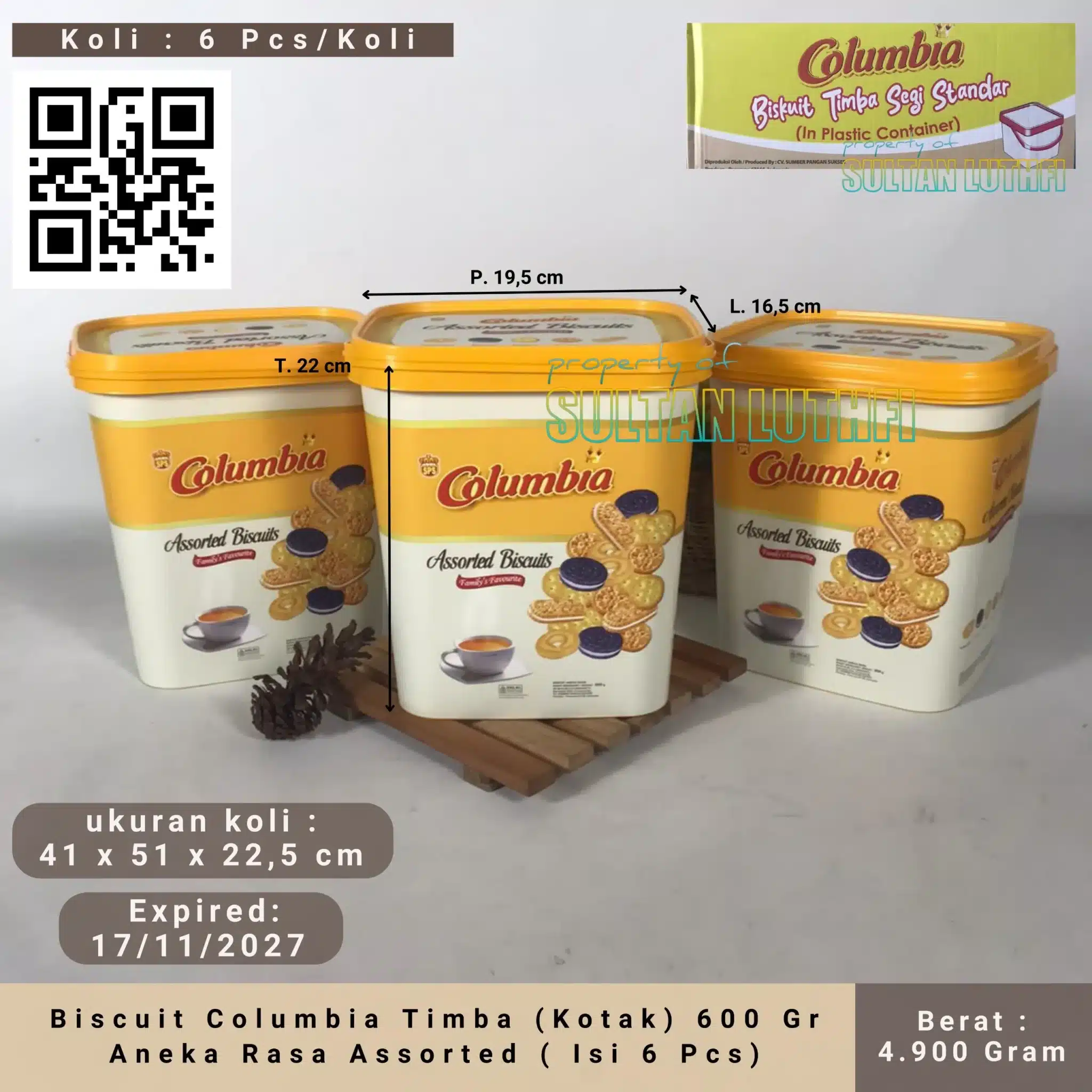 Biscuit Columbia Timba (Kotak) 600 Gr Aneka Rasa Assorted ( Isi 6 Pcs)