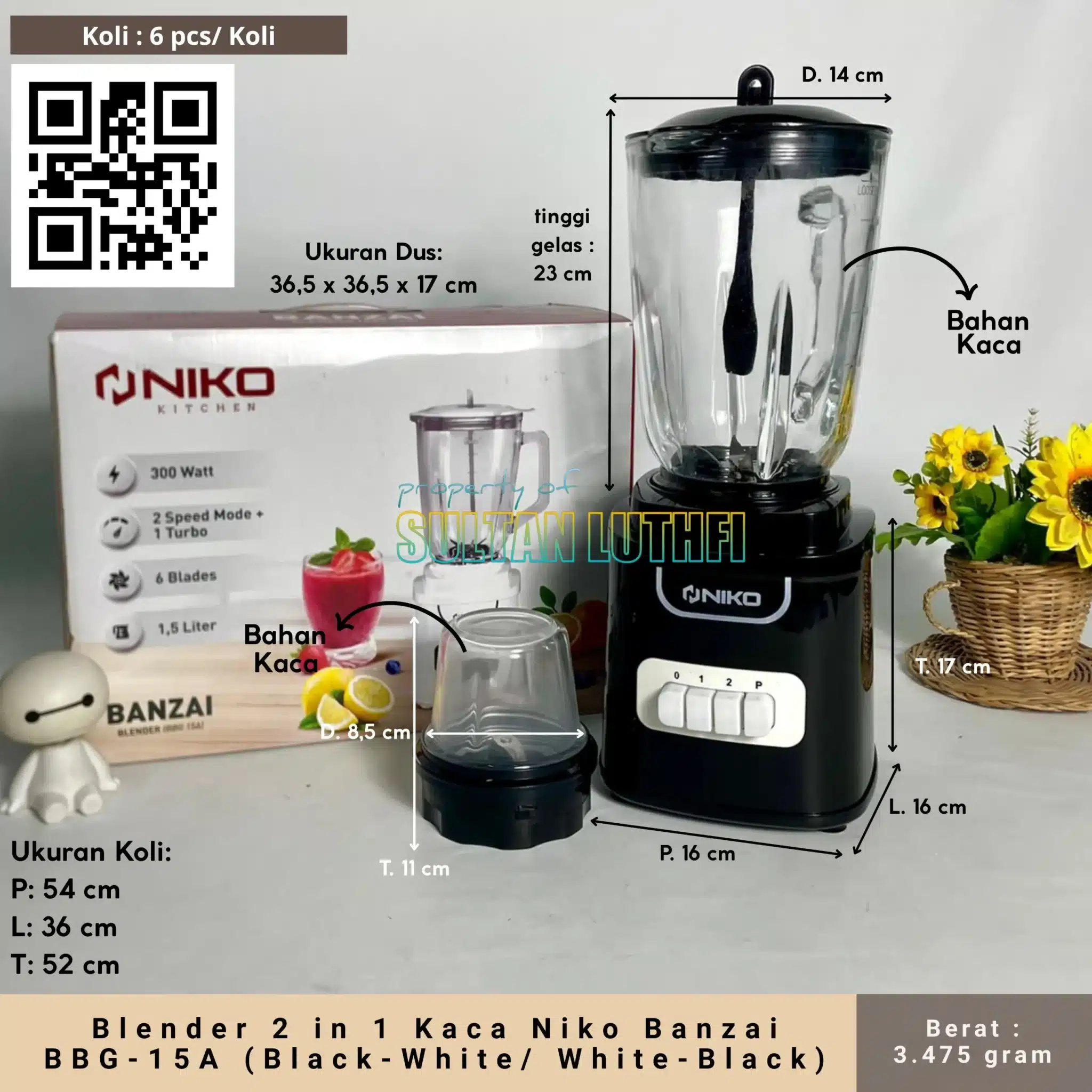 Blender 2 in 1 Kaca Niko Banzai BBG-15A (Black-White/ White-Black)