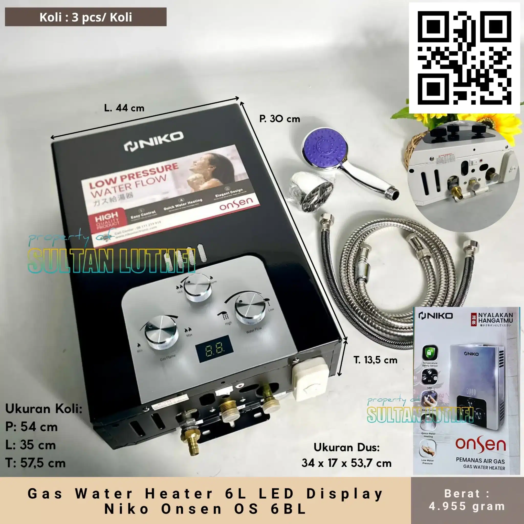 Gas Water Heater 6L LED Display Niko Onsen OS 6BL