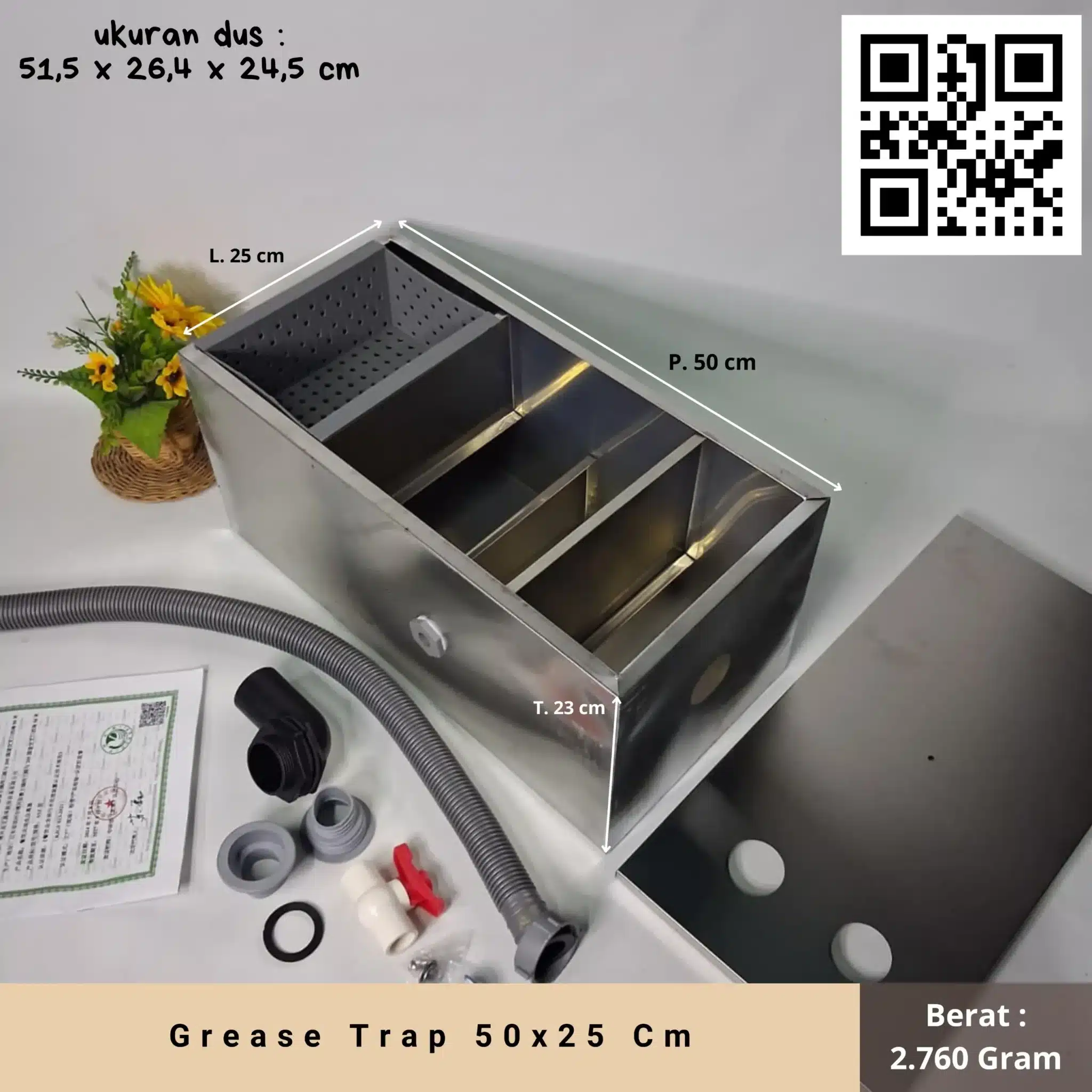 Baffle pada saluran keluar mencegah FOG mengalir langsung melalui unit. FOG ini tertahan di dalam unit bersama partikel makanan, sementara air bersih mengalir di bawah pelat penyekat melalui unit untuk dikeringkan. Limbah yang tertahan di dalam unit dapat dengan mudah dibuang secara berkala menggunakan filter jaring halus yang dapat dilepas.