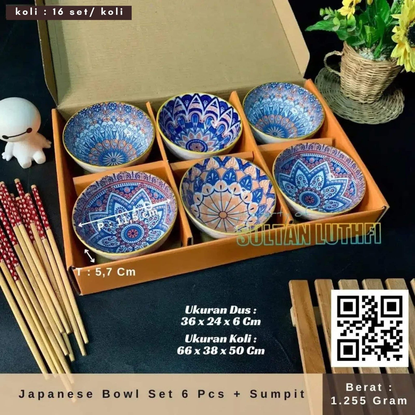 Japanese Bowl Set 6 Pcs + Sumpit