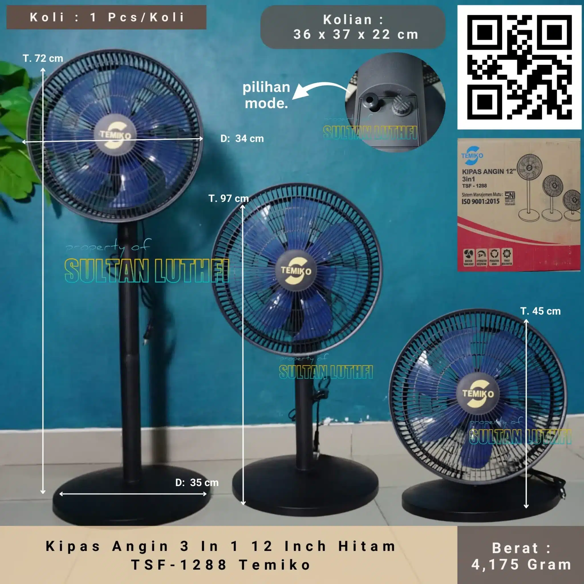 Kipas Angin 3 In 1 12 Inch Hitam TSF-1288 Temiko