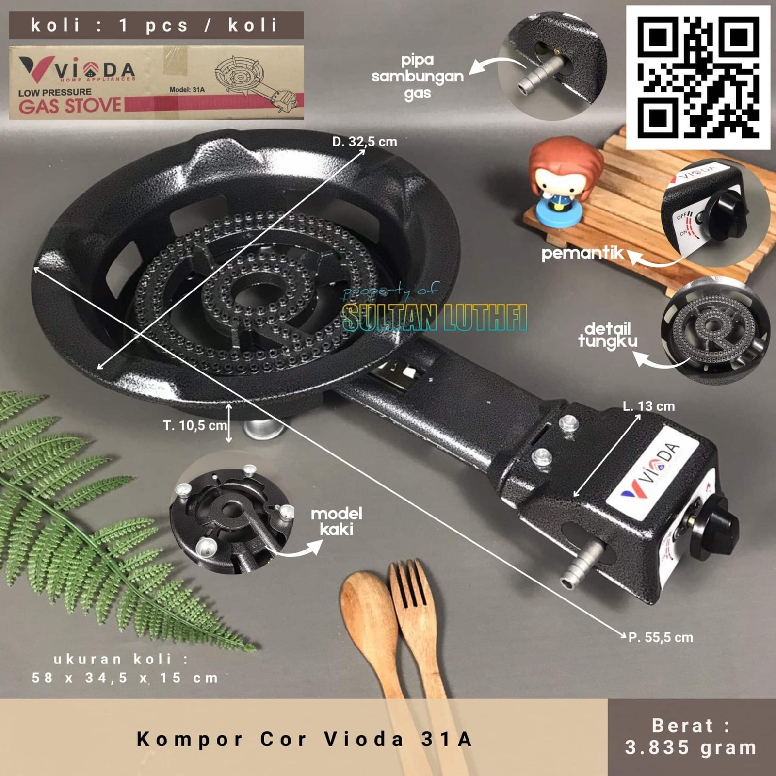 Vioda Kompor Gas 1 Tungku Low Pressure merupakan salah satu kompor terbaik untuk bidang komersial. Bertipe low pressure atau tekanan gas yang rendah, tetapi menghasilkan api yang besar. Cocok untuk dapur rumah makan besar maupun kecil. Tungku yang kokoh dari besi cor mampu diandalkan untuk menompang beban yang berat. Sistem penyaan tanpa korek api yakni berupa piezo ignition. Tungku dengan lima sudut penyangga bisa memberikan penjagaan dengan baik di setiap perabotan memasak, sedari panci maupun penggorengan.