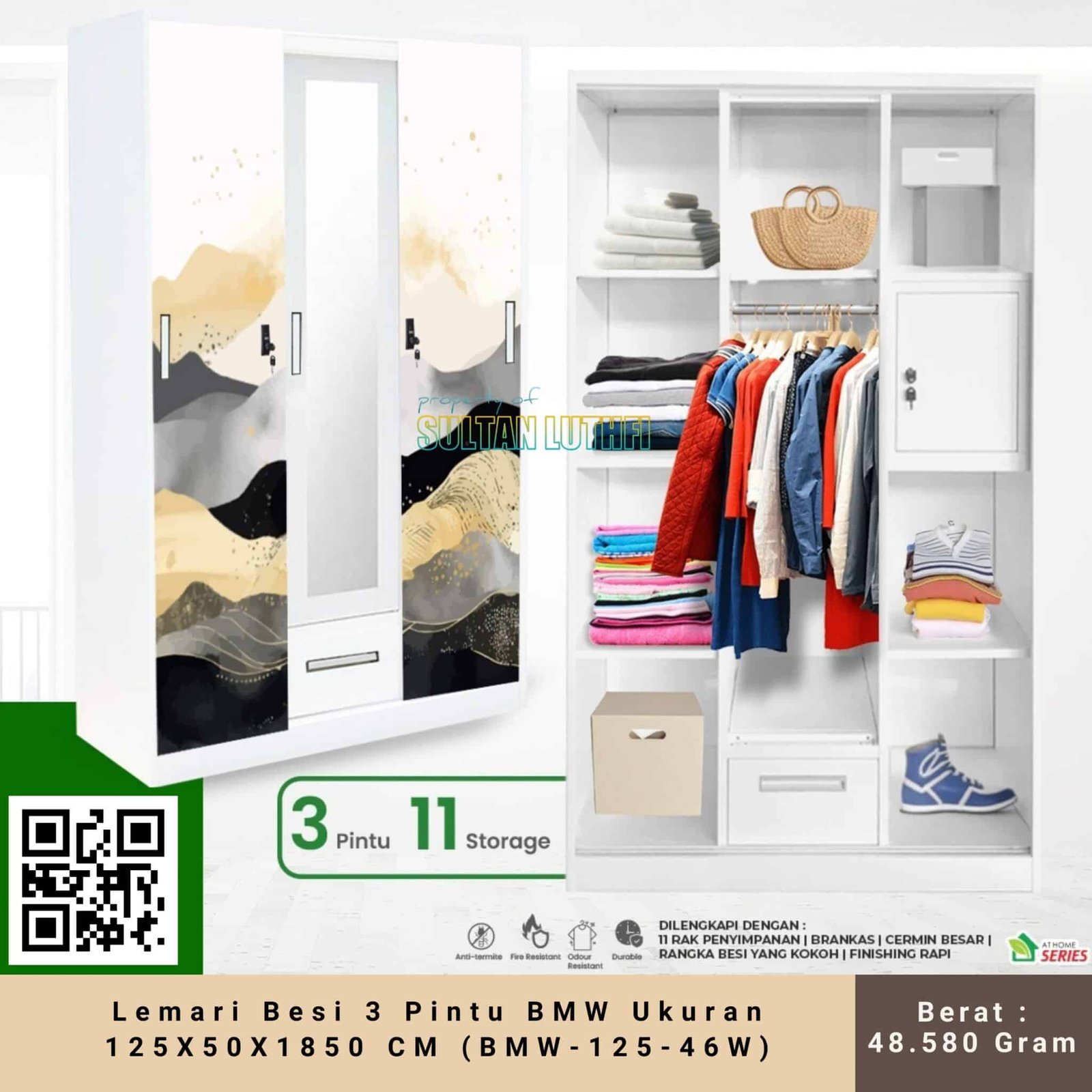 Lemari Besi 3 Pintu BMW Ukuran 125X50X1850 CM (BMW-125-46W)