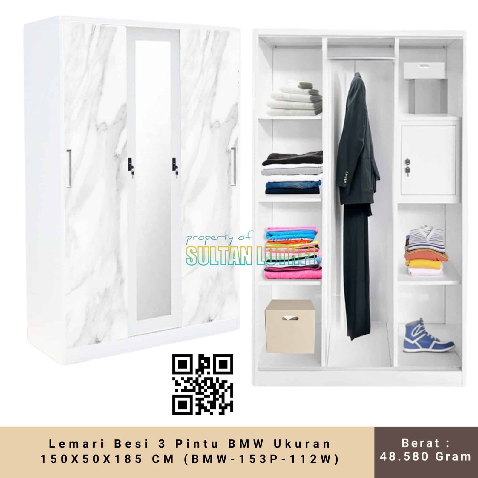 Lemari Besi 3 Pintu BMW Ukuran 150X50X185 CM (BMW-153P-112W)
