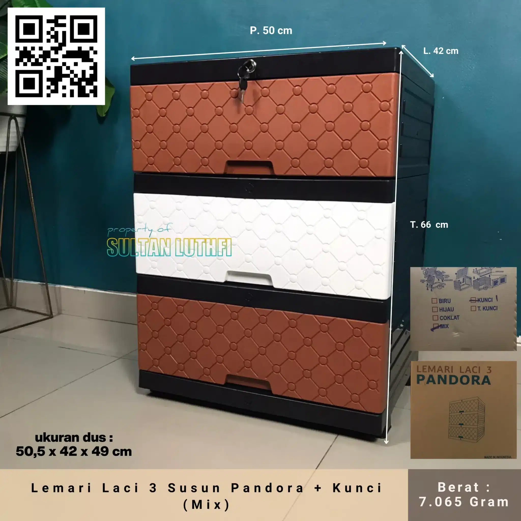 Lemari Laci 3 Susun Pandora + Kunci (Mix)