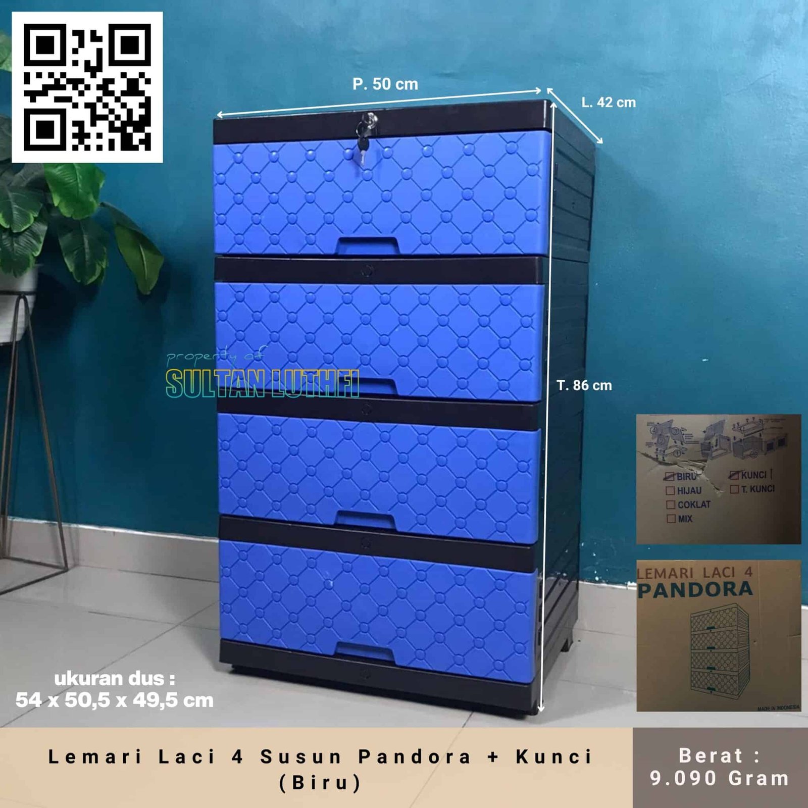 Lemari Laci 4 Susun Pandora + Kunci (Biru)