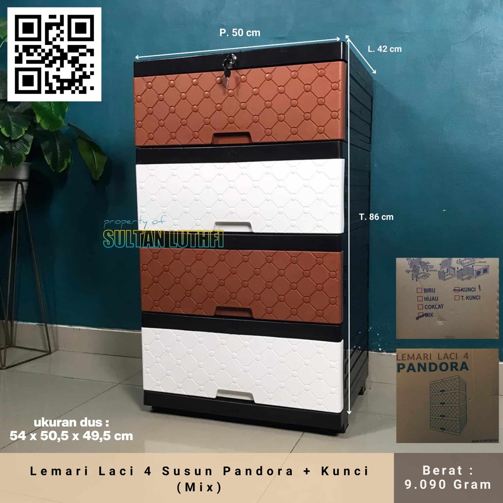 Lemari Laci 4 Susun Pandora + Kunci (Mix)