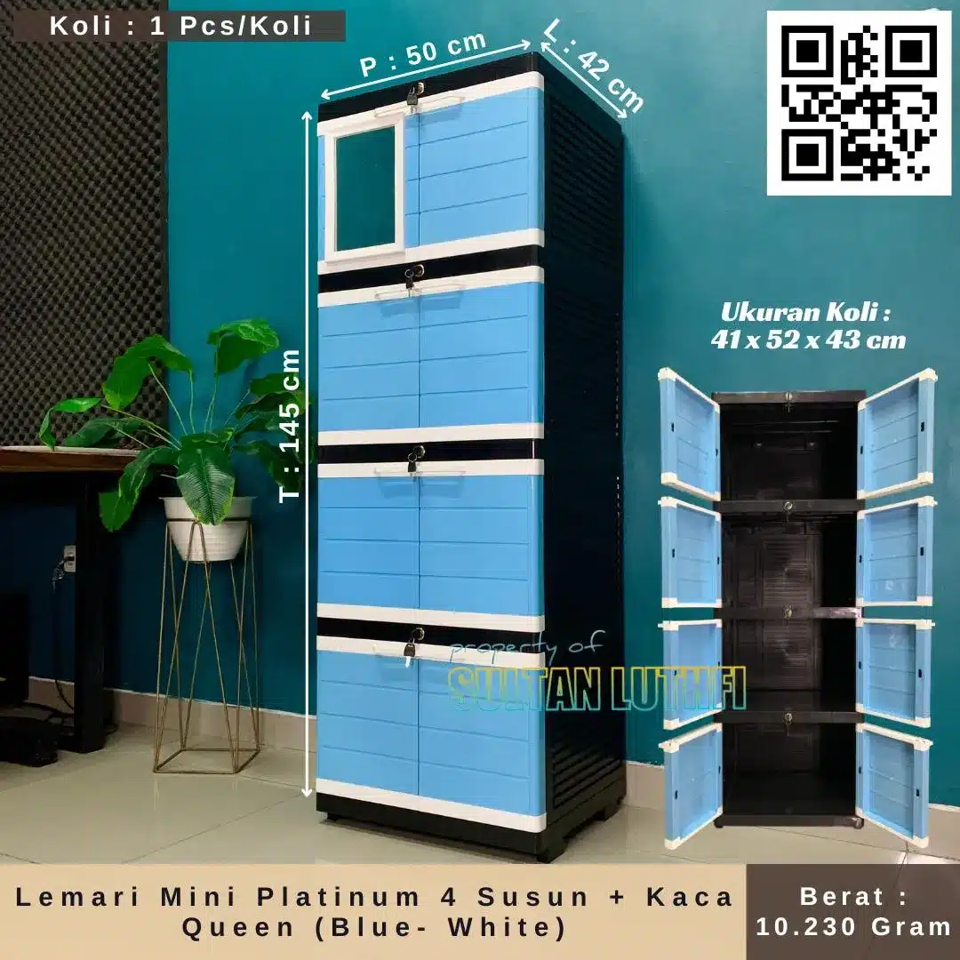 Lemari Mini Platinum 4 Susun + Kaca Queen (Blue- White)
