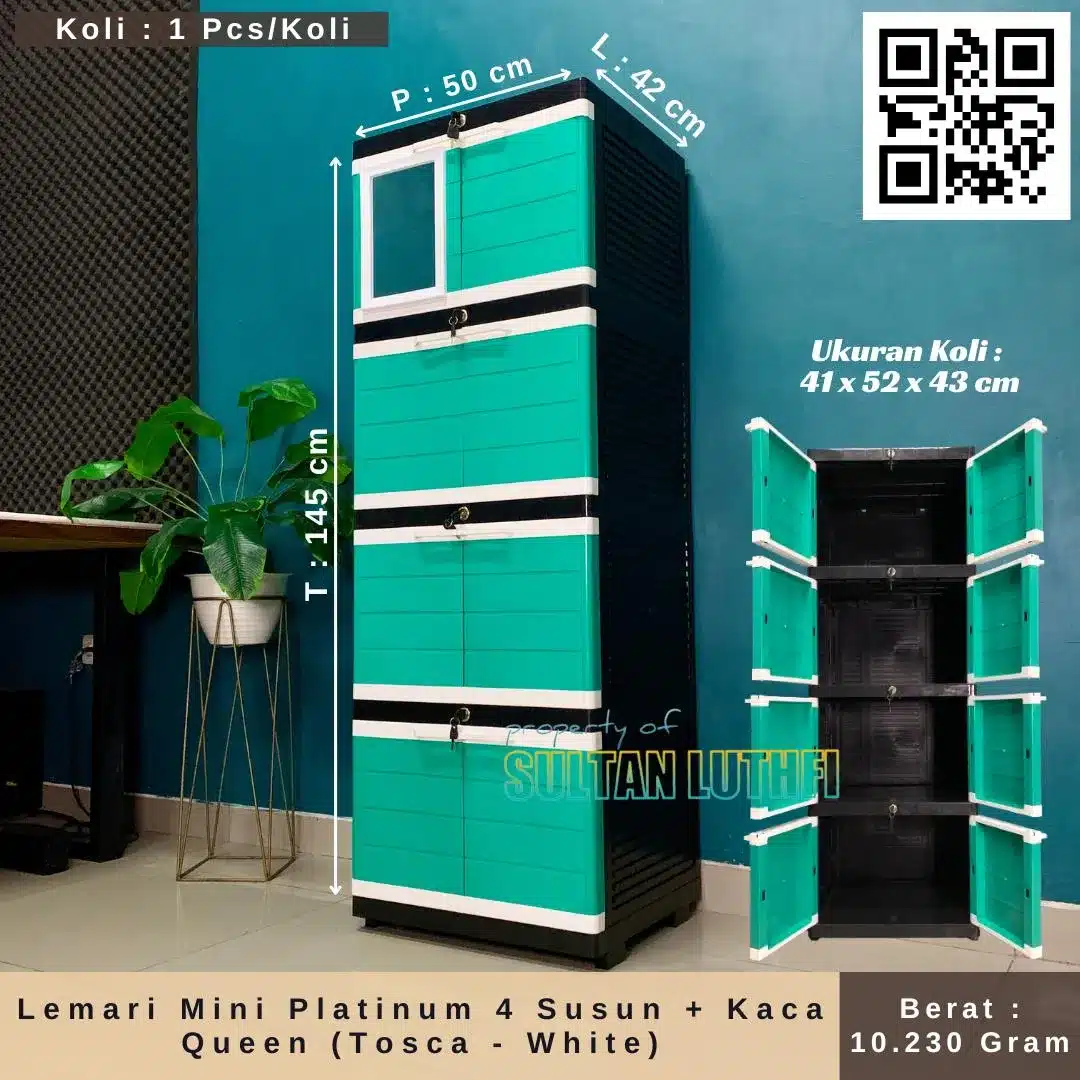 Lemari Mini Platinum 4 Susun + Kaca Queen (Tosca – White)