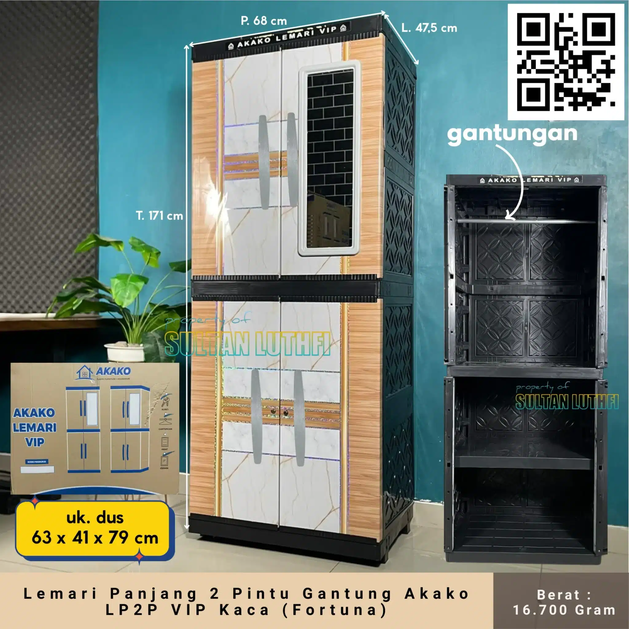 – Pintu tebal, engsel kokoh, kaki lemari yang kuat dan terdapat cermin yang luas
