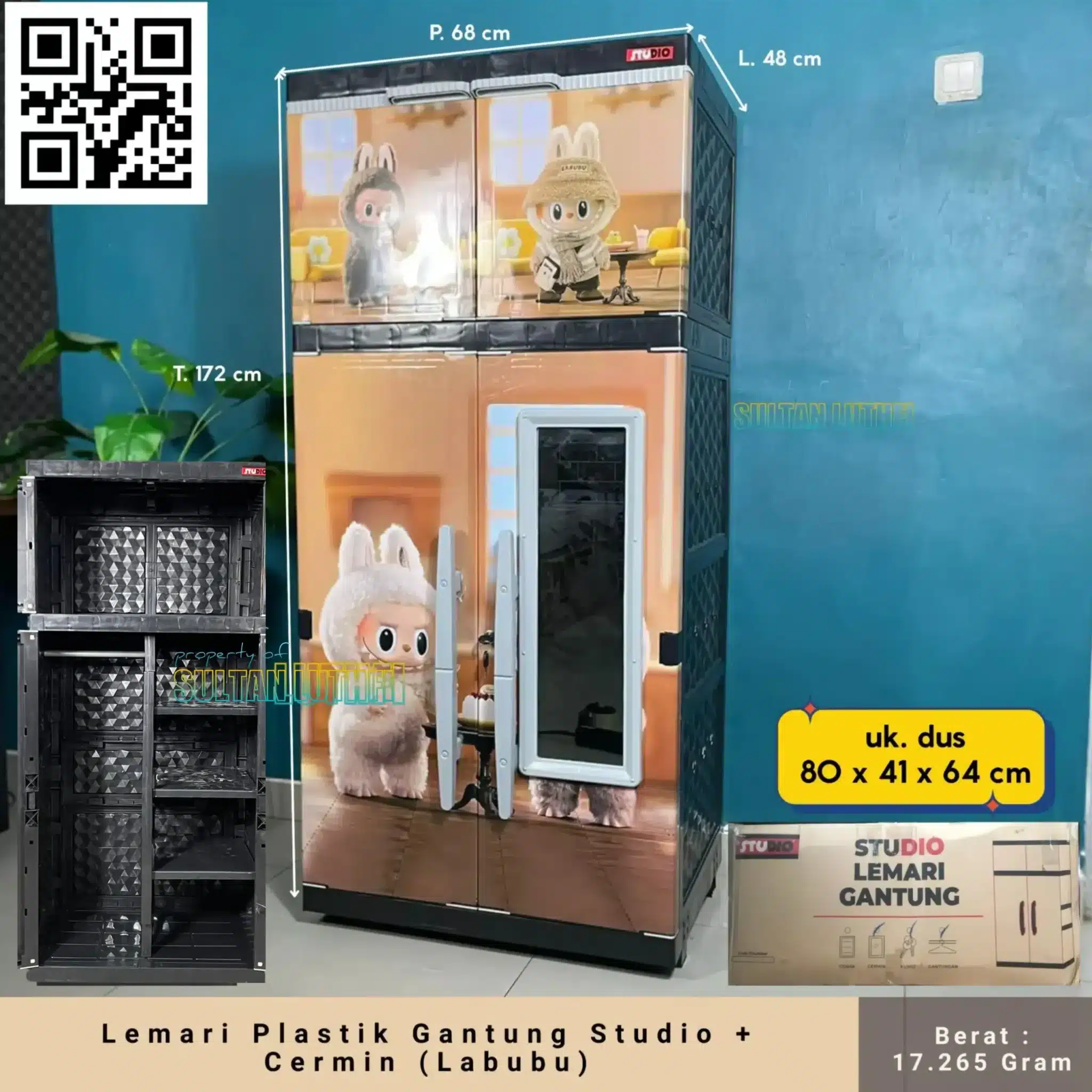 – Pintu tebal, engsel kokoh, kaki lemari yang kuat dan terdapat cermin yang luas