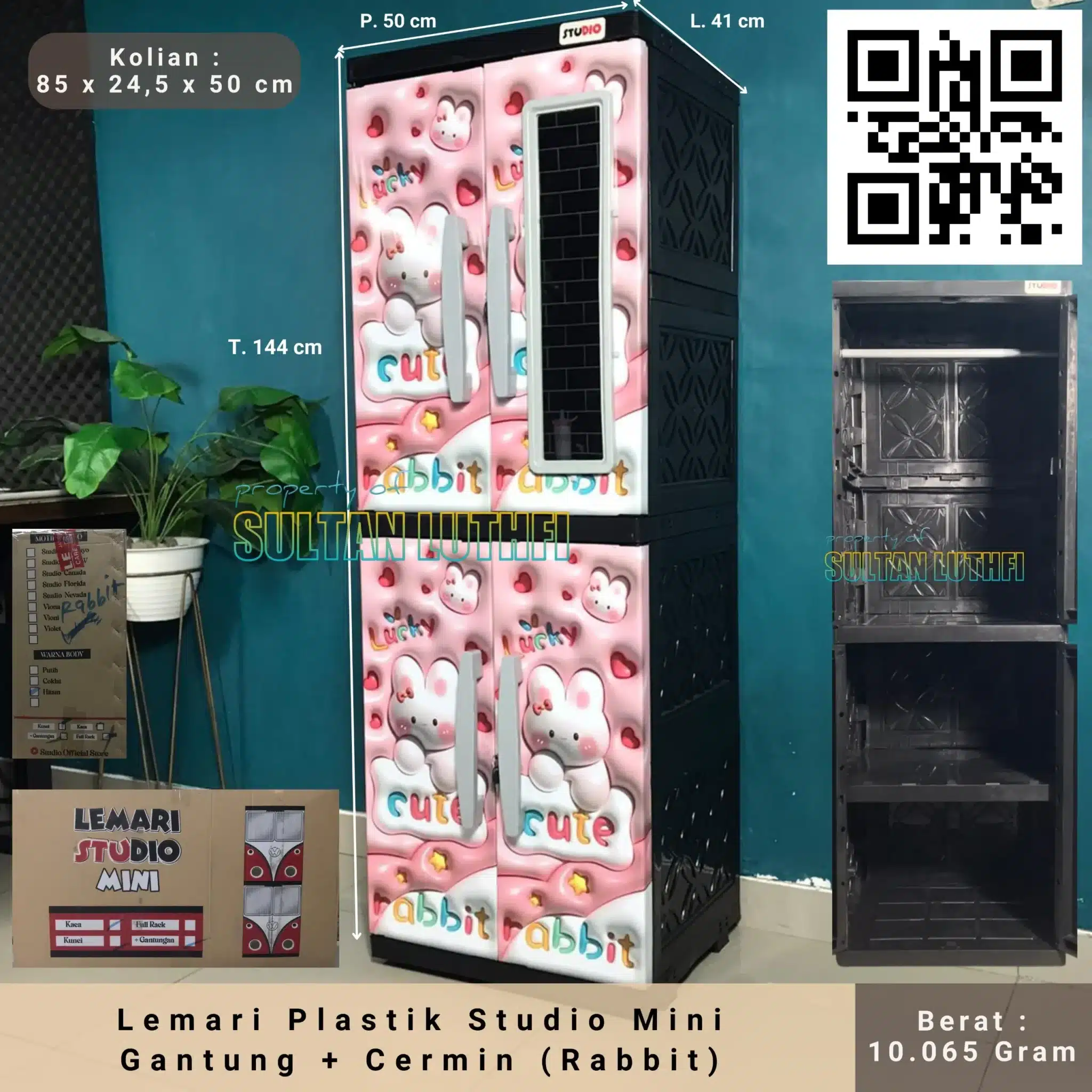 Lemari Plastik Studio Mini Gantung + Cermin (Rabbit)