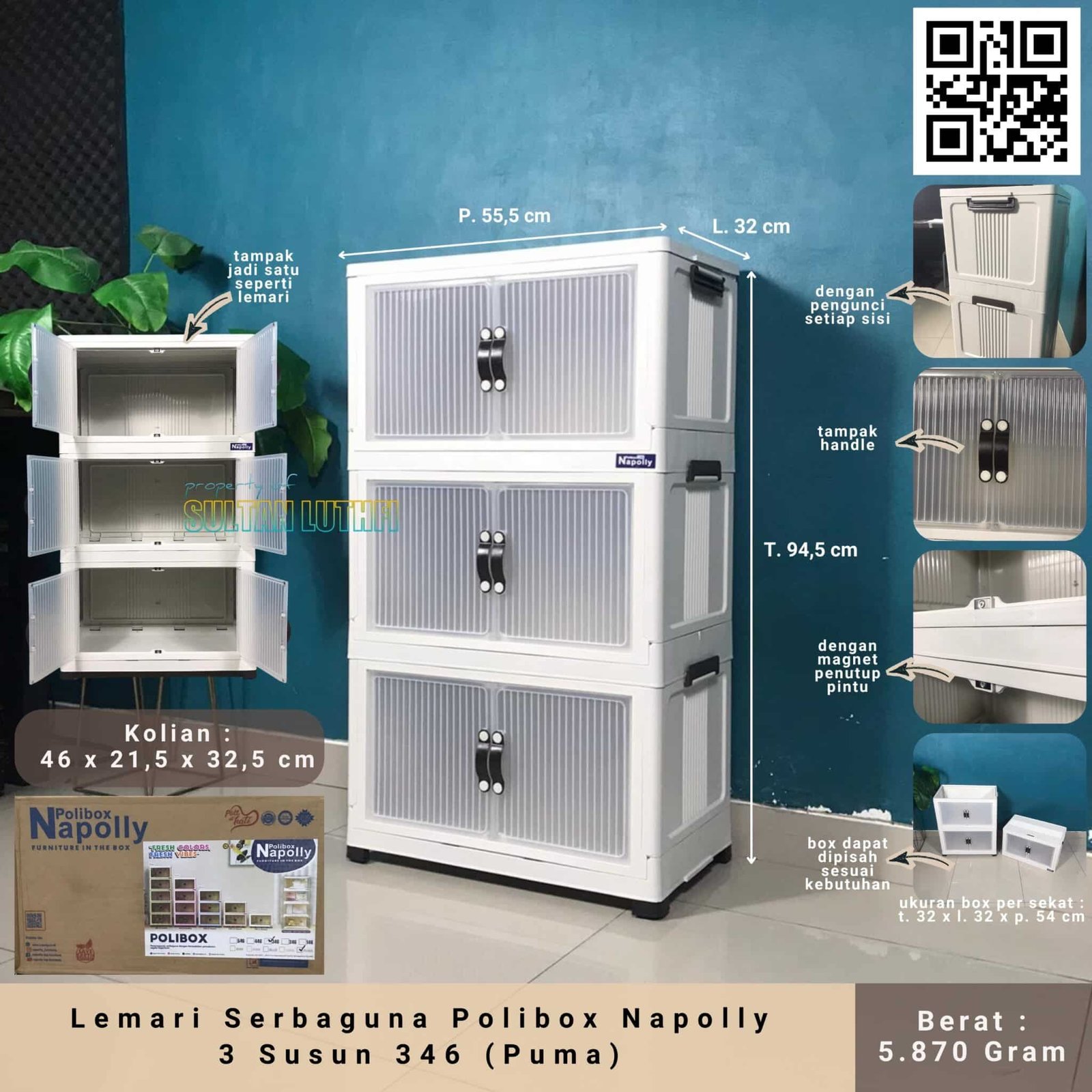 Lemari Box Susun 3 multifungsi! Produk dengan kualitas terbaik siap digunakan untuk menyimpan segala kebutuhan anda. Hadir dengan susun yang lebih banyak membuat semakin banyak kapasitas ruang untuk penyimpanan anda. Dengan penampilan yang modern dapat membuat ruangan anda menjadi lebih tertata dan tampak lebih cantik.