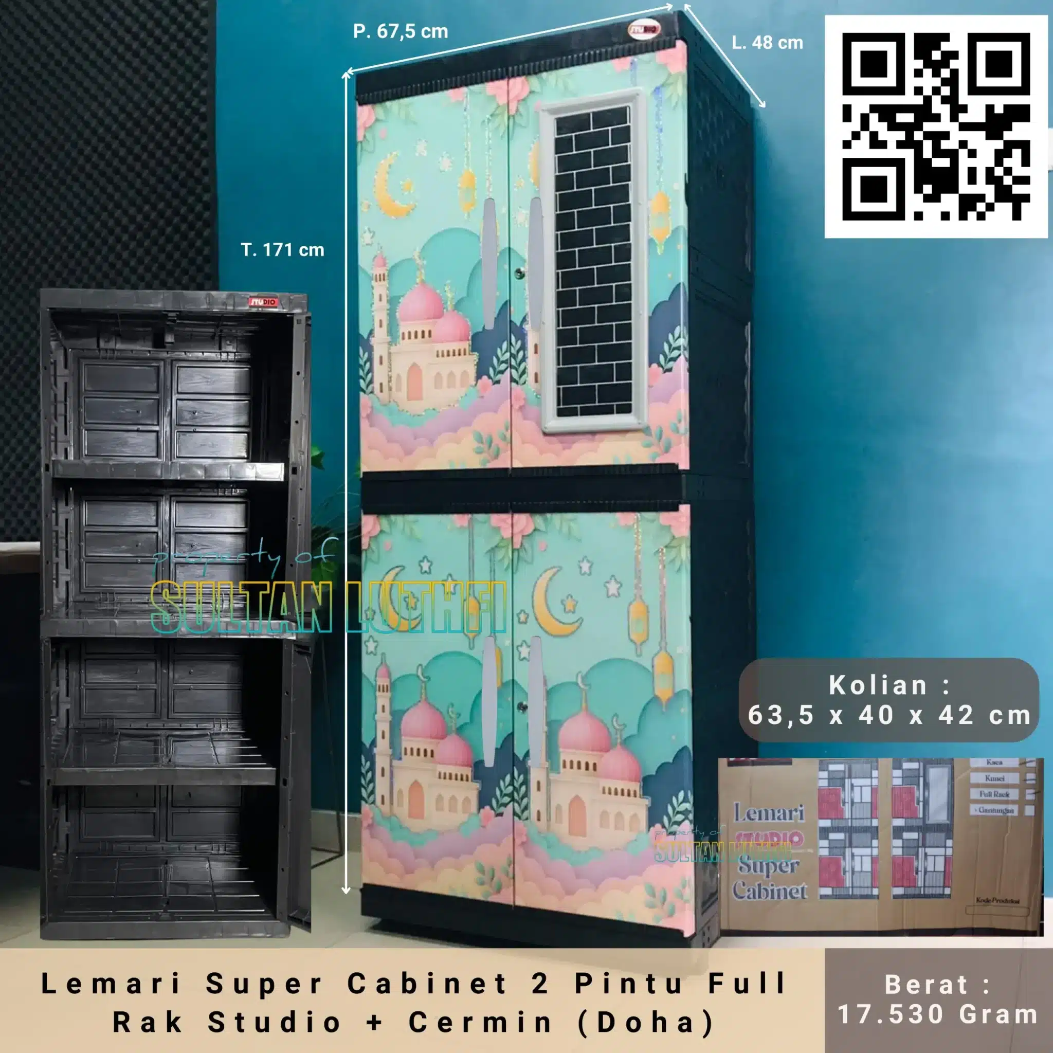 – Pintu tebal, engsel kokoh, kaki lemari yang kuat dan terdapat cermin yang luas