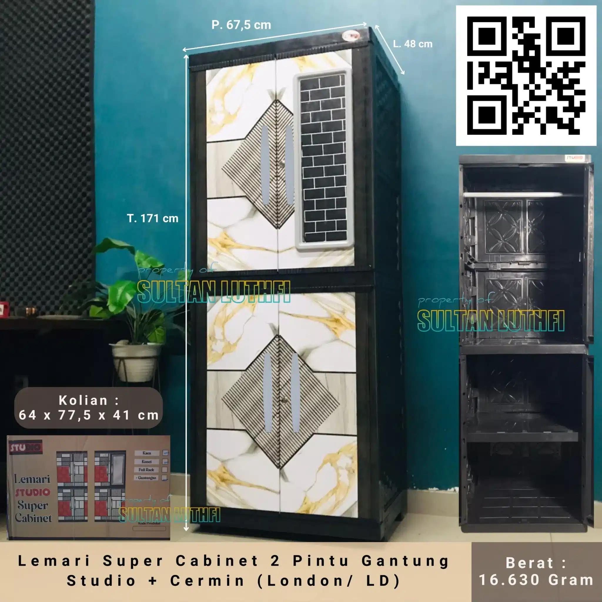 – Pintu tebal, engsel kokoh, kaki lemari yang kuat dan terdapat cermin yang luas