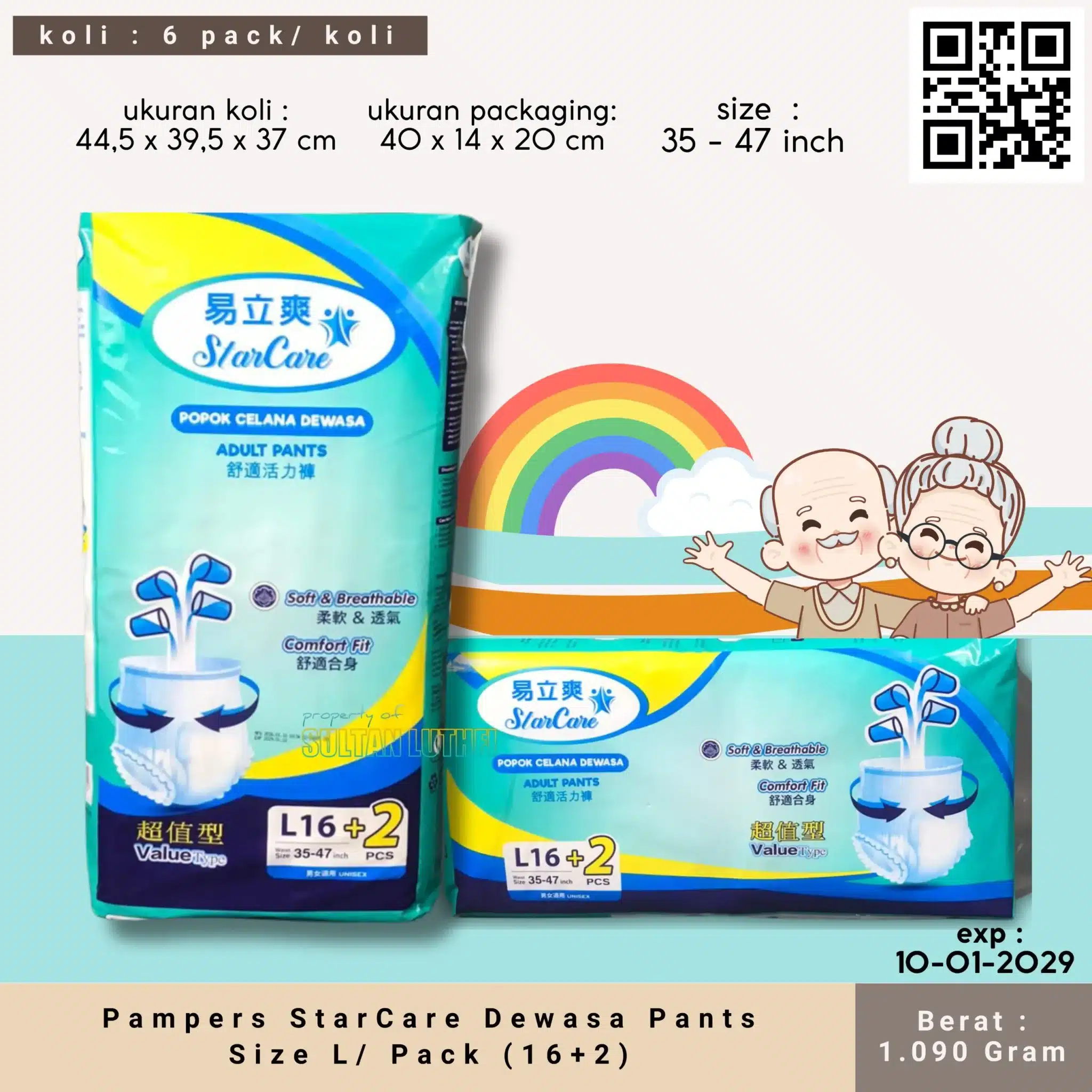 Pampers StarCare Dewasa Pants Size L/ Pack (16+2)