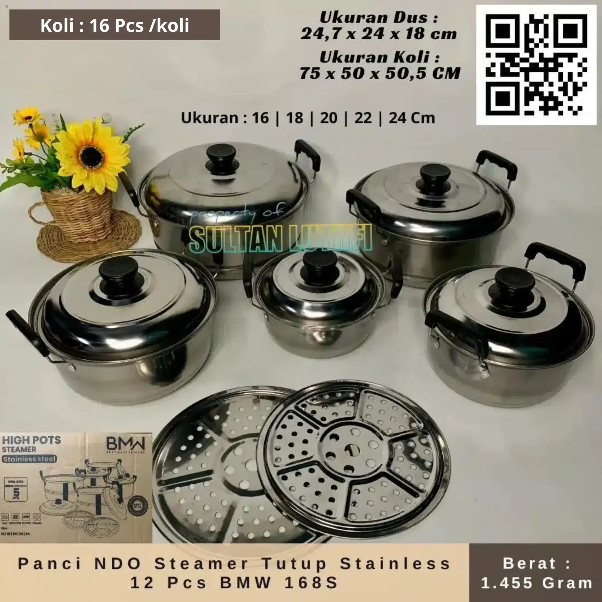 Panci NDO Steamer Tutup Stainless 12 Pcs BMW 168S