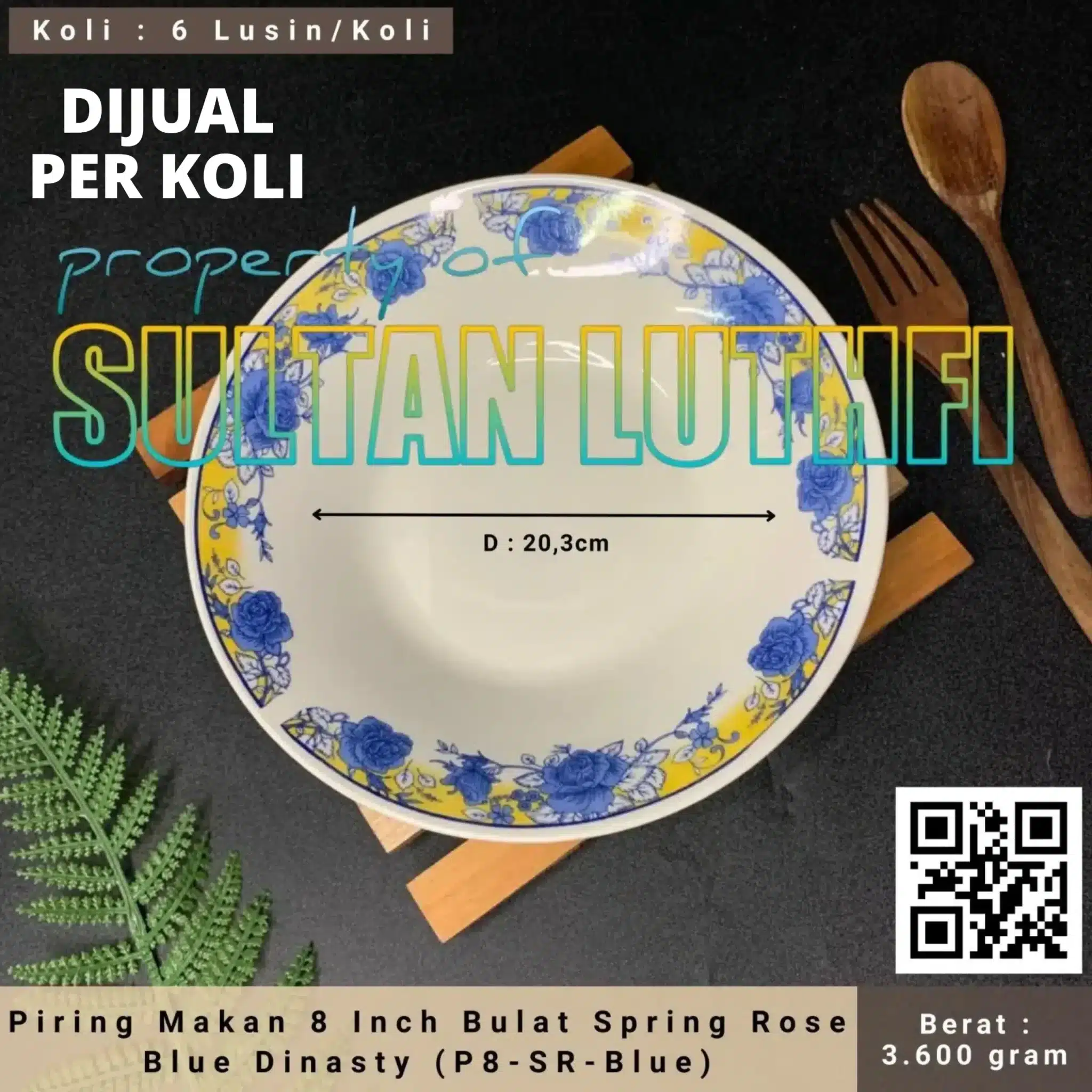 Piring Makan 8 Inch Bulat Spring Rose Blue Dinasty (P8-SR-Blue)