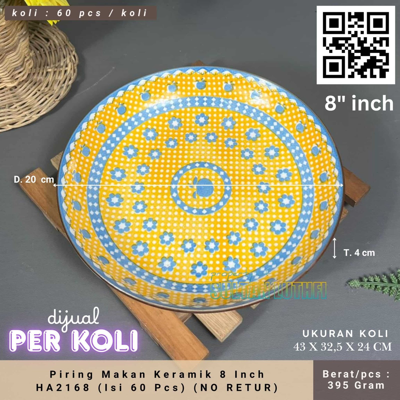 Piring Makan Keramik 8 Inch HA2168 (Isi 60 Pcs) (NO RETUR)