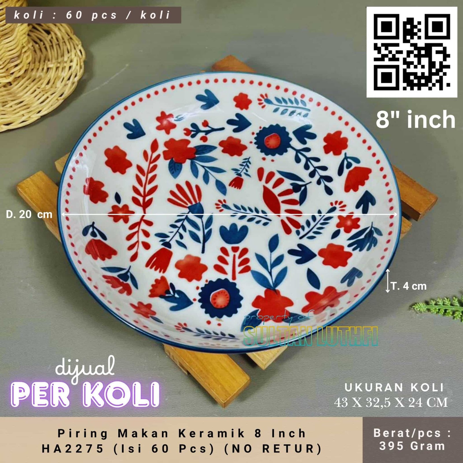 Piring Makan Keramik 8 Inch HA2275 (Isi 60 Pcs) (NO RETUR)