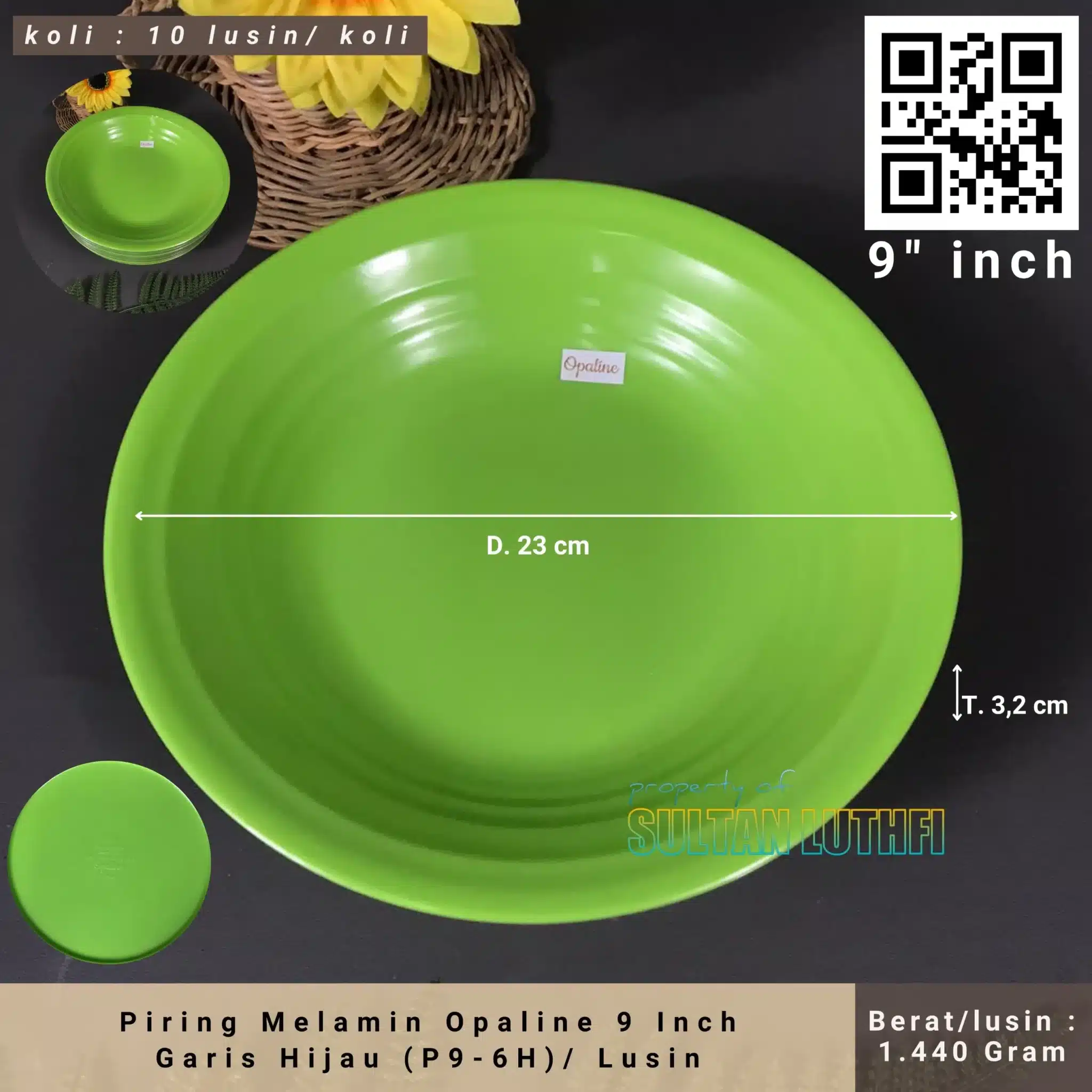 Piring Melamin Opaline 9 Inch Garis Hijau (P9-6H)/ Lusin