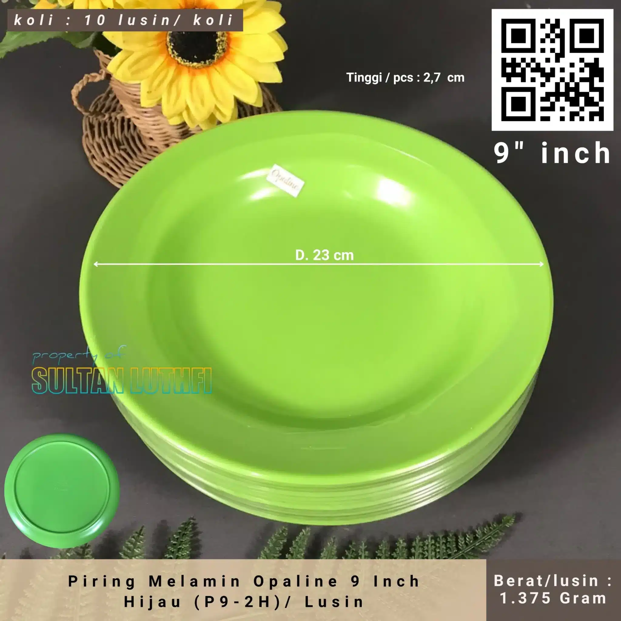 Piring Melamin Opaline 9 Inch Hijau (P9-2H)/ Lusin