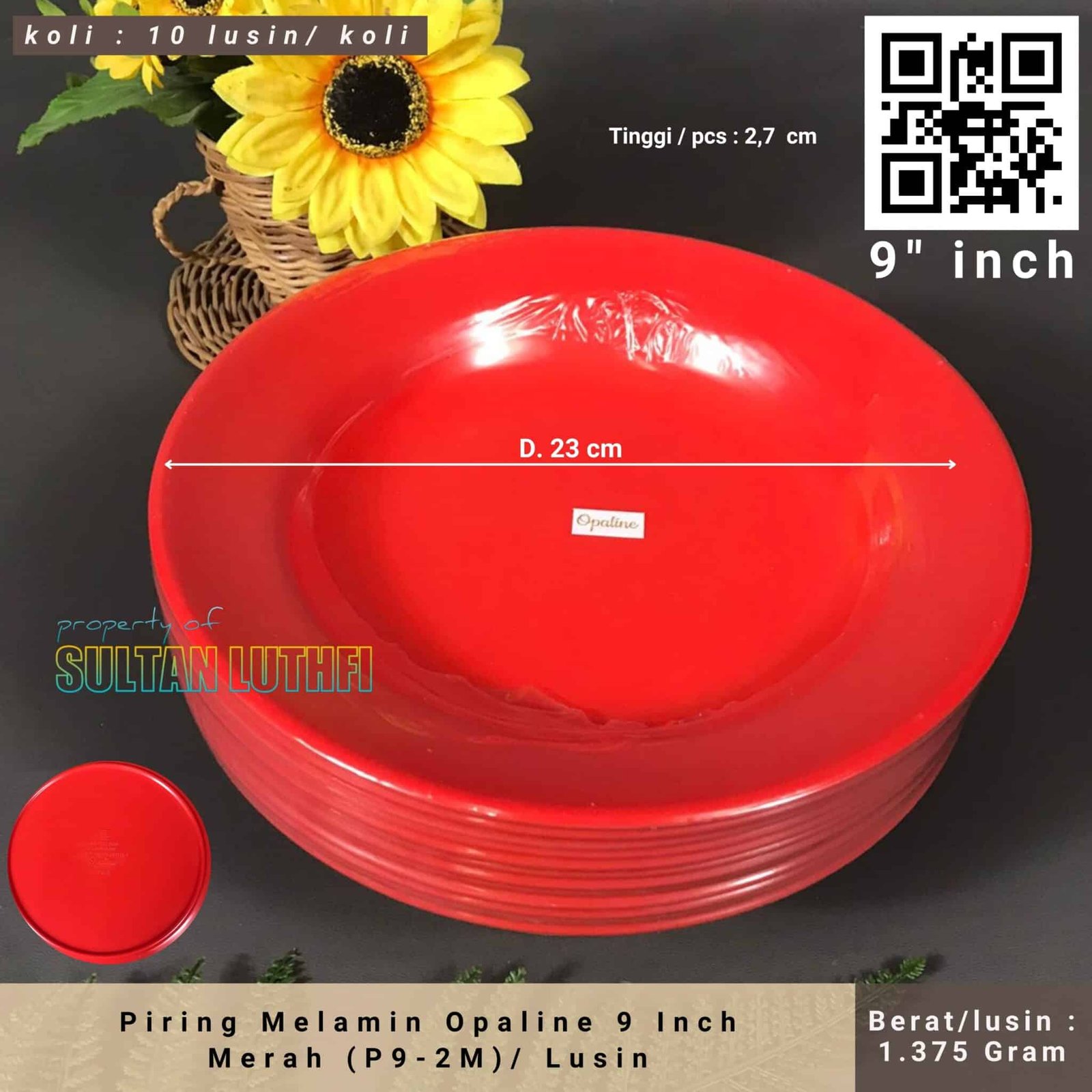 Piring Melamin Opaline 9 Inch Merah (P9-2M)/ Lusin