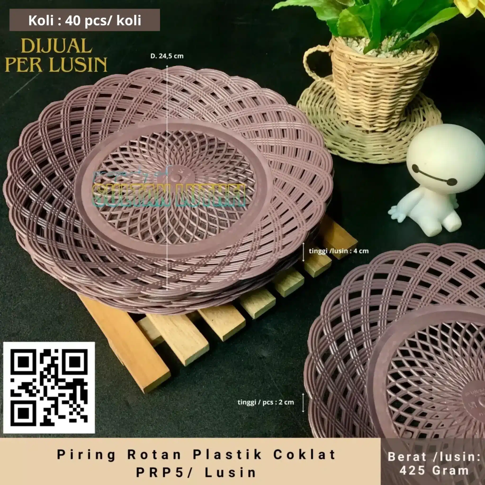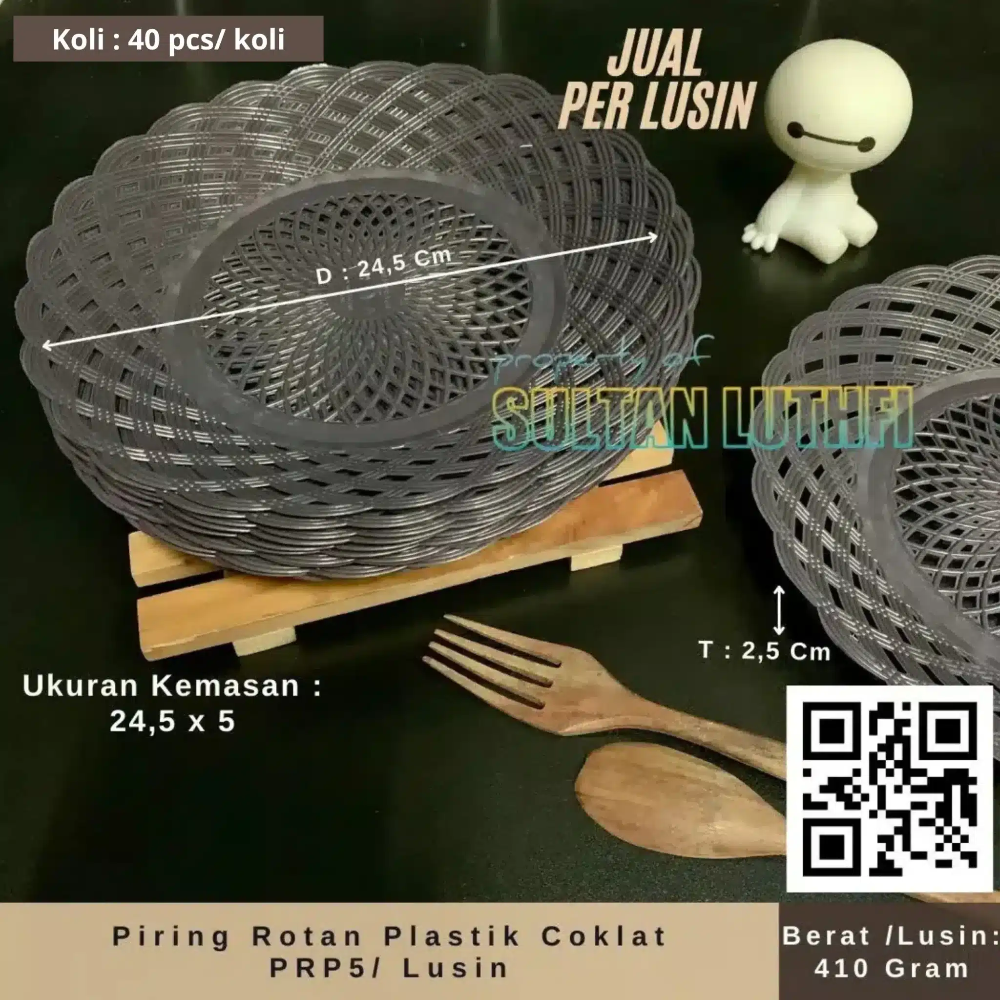 Piring plastik model anyaman. Bahan tebal, ringan serta food grade.