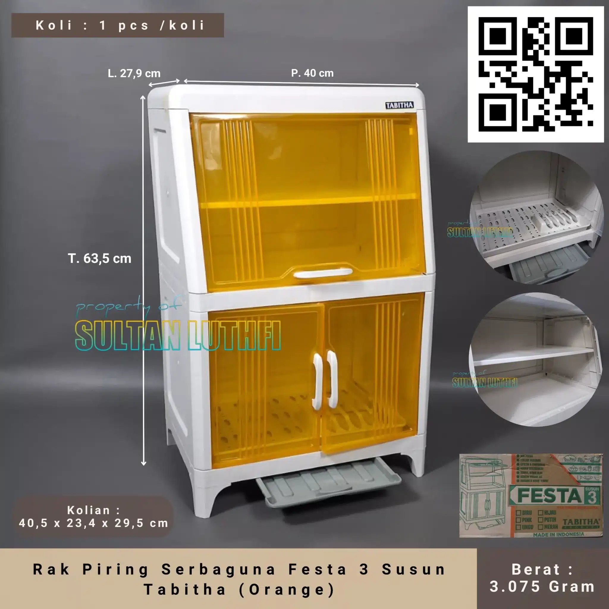 Rak Piring Serbaguna Festa 3 Susun Tabitha (Orange)