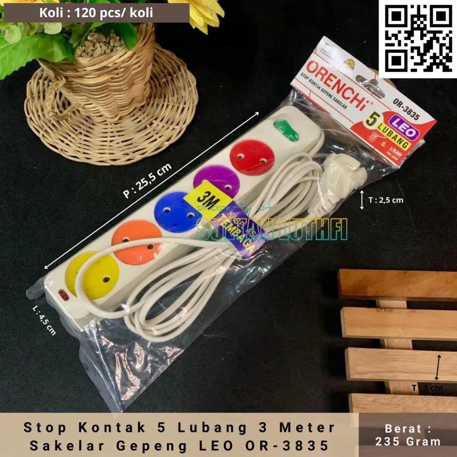 Merk ORENCHI -Terminal Stopkontak Kuningan – Panjang 3 Meter Full – Kabel Full Tembaga Asli – Dilengkapi dengan Saklar Lampu