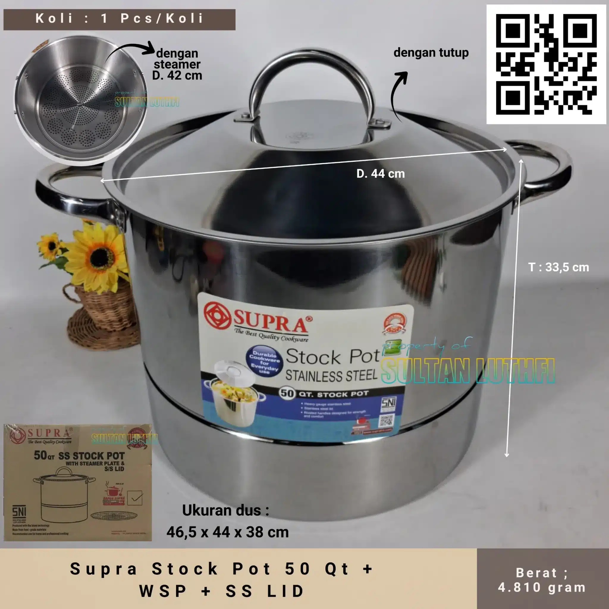 3. Dengan kapasitasnya yang besar 50 QT = 48 ltr. Supra steamer ini sangat membantu anda untuk menyajikan masakan dalam kuantitas yg besar.