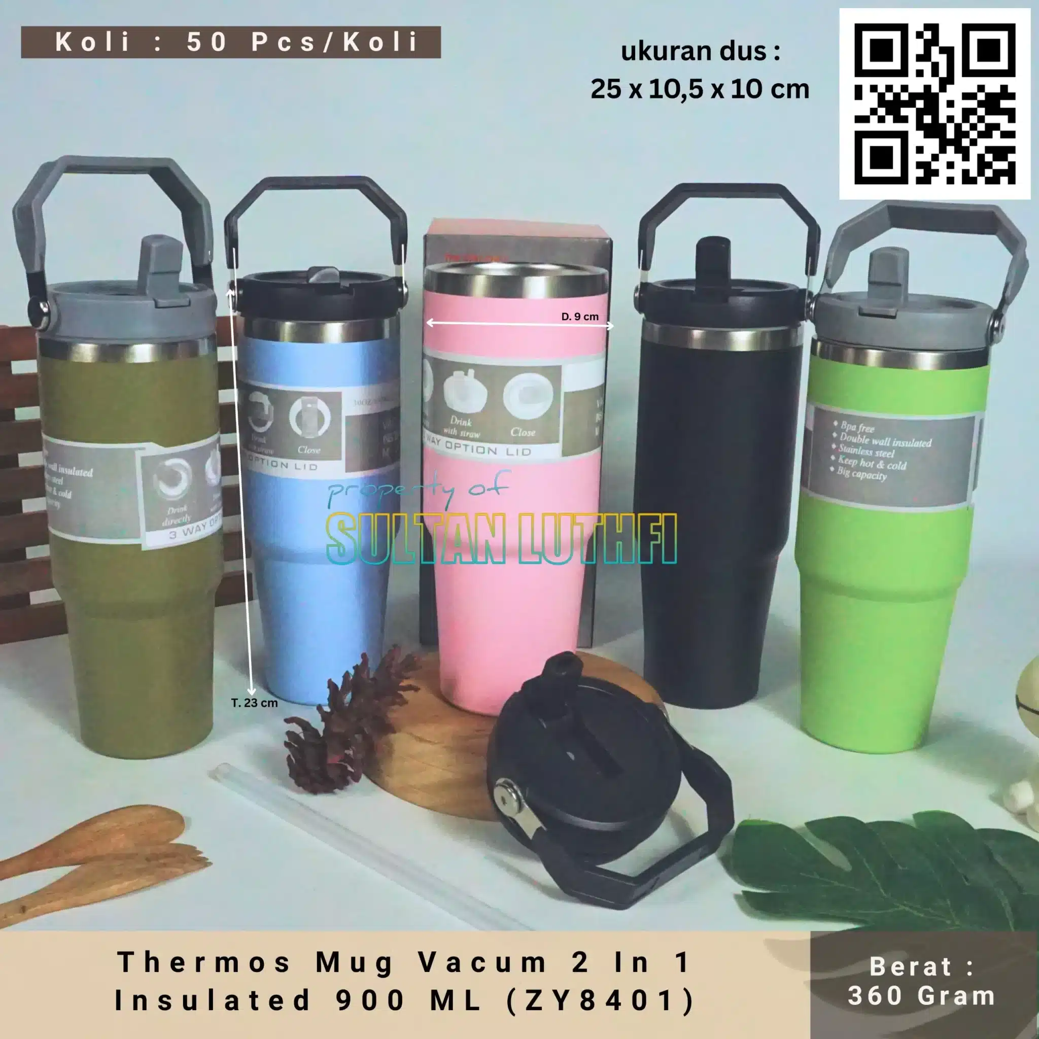 Pegangan dapat dilipat agar mudah dibawa tanpa memakan tempat.