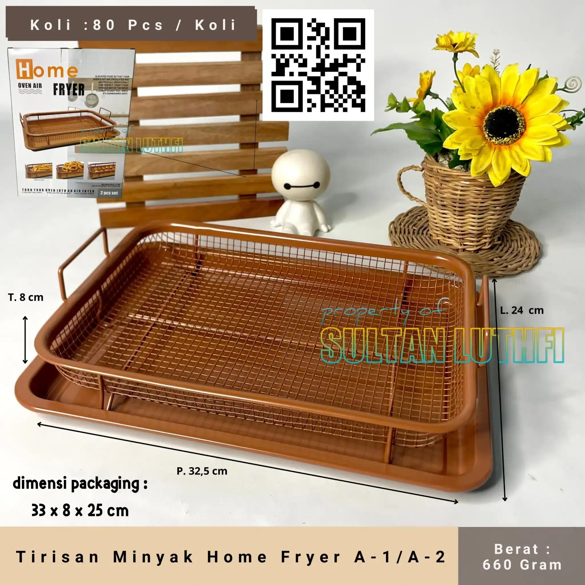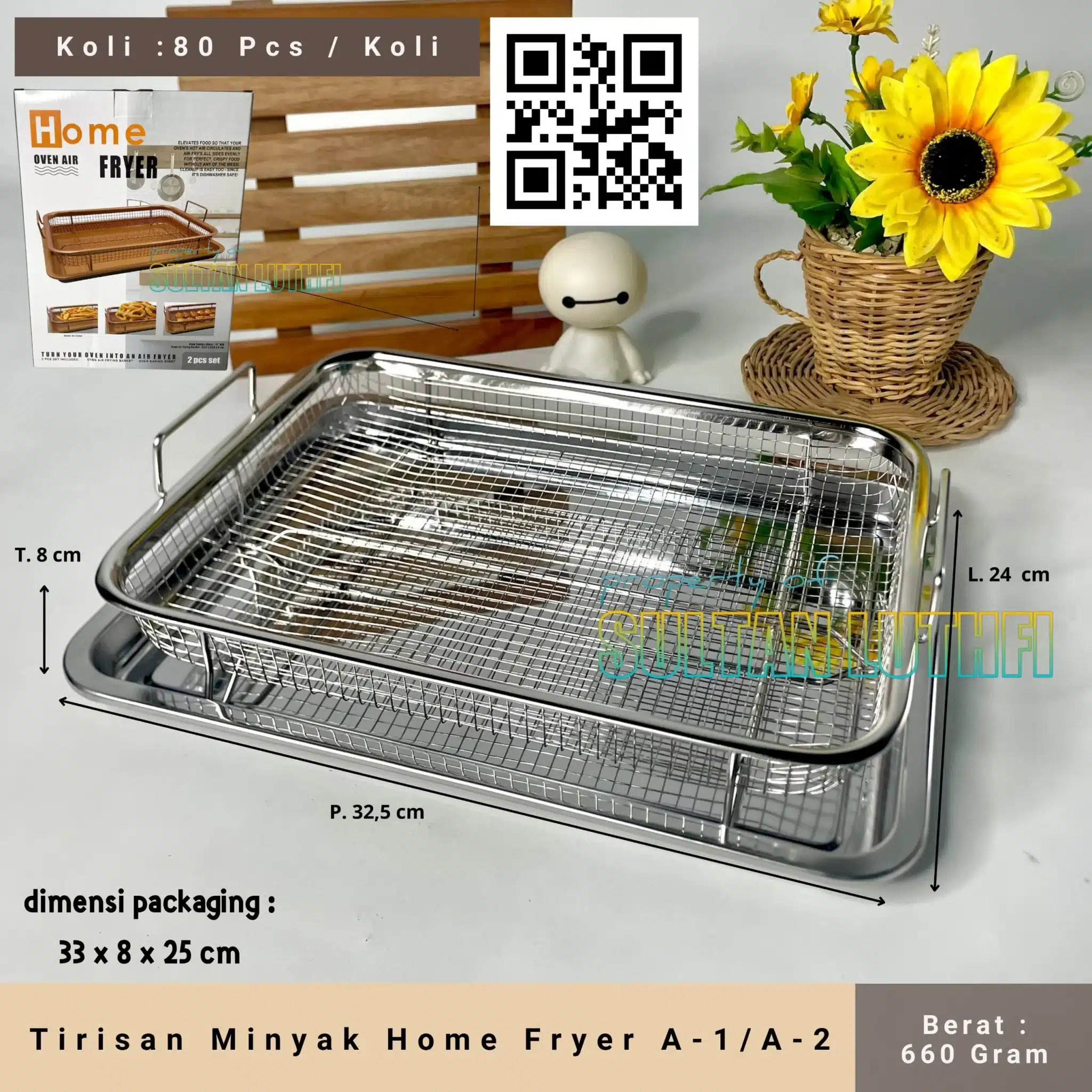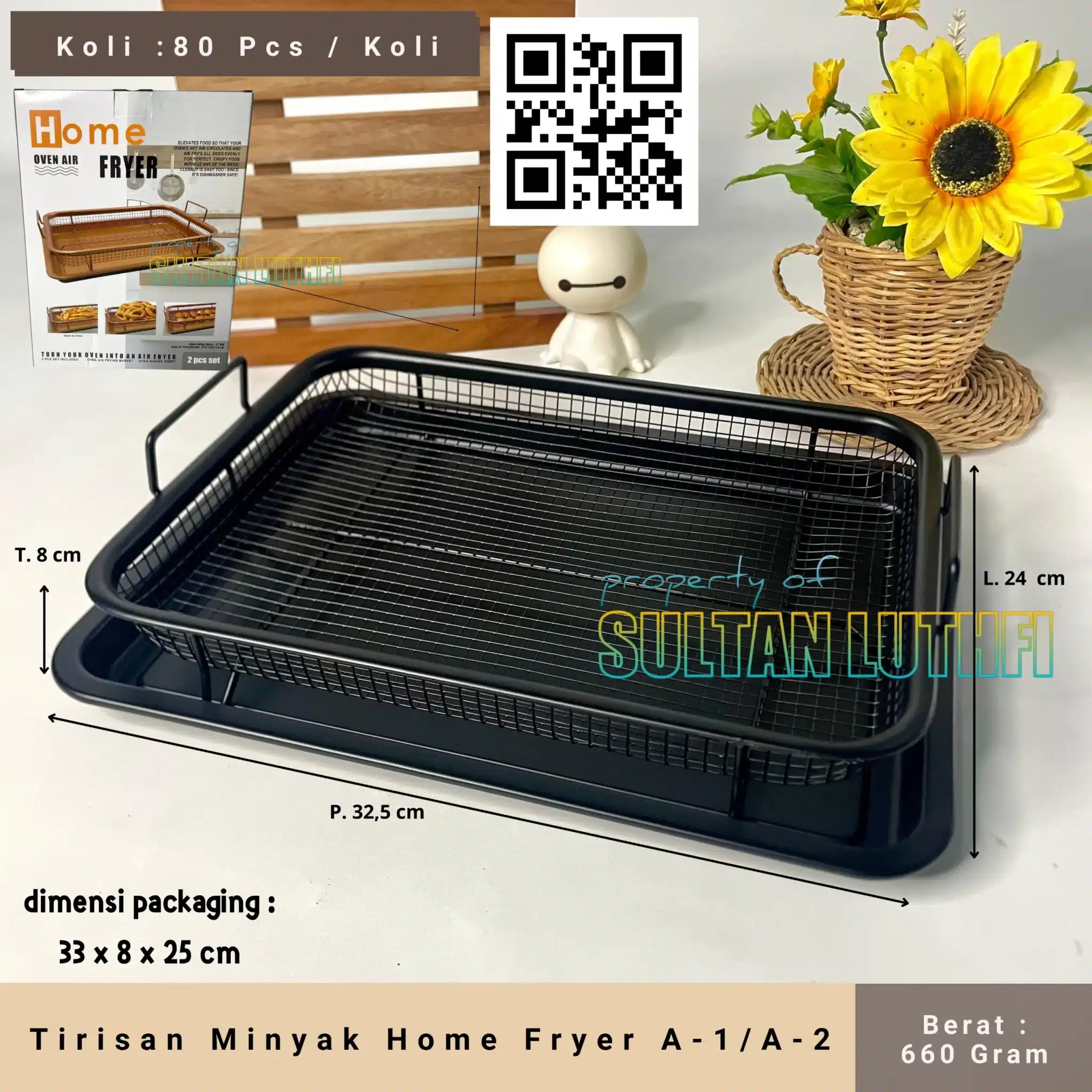 Solusi serbaguna memanggang sekaligus peniris minyak yang dapat membuat makanan lebih sehat dan crispy terbuat dari bahan carbon steel dengan ceramic coating kualitas tinggi yang aman digunakan hingga suhu 280 derajat celcius. Crisper dapat membuat makanan matang lebih sempurna karena bentuk design grill yang membantu panas merata dari berbagai sisi