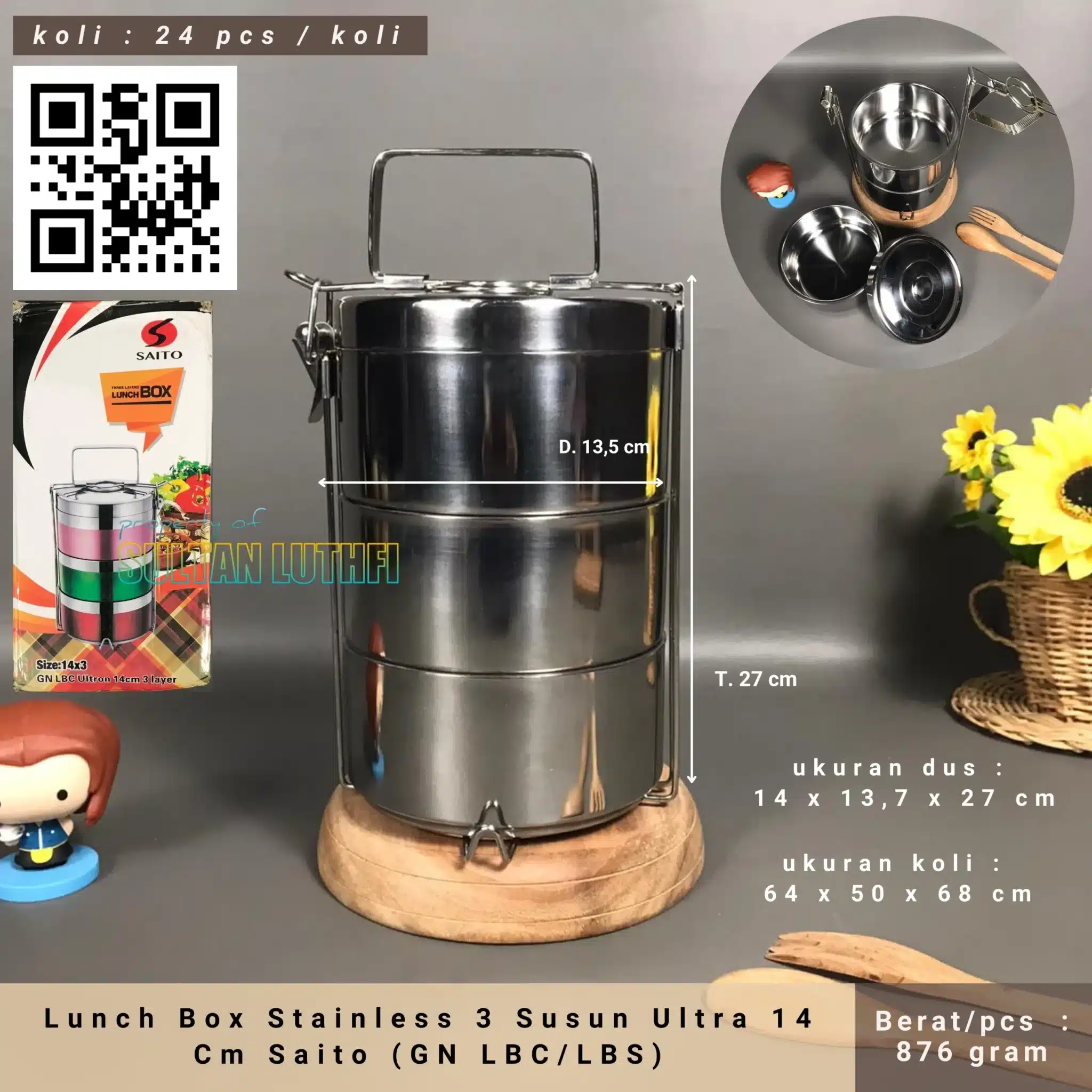 * Dimensi : diameter 13.5cm ; tinggi tiap wadah 6cm ; tinggi keseluruhan 27cm