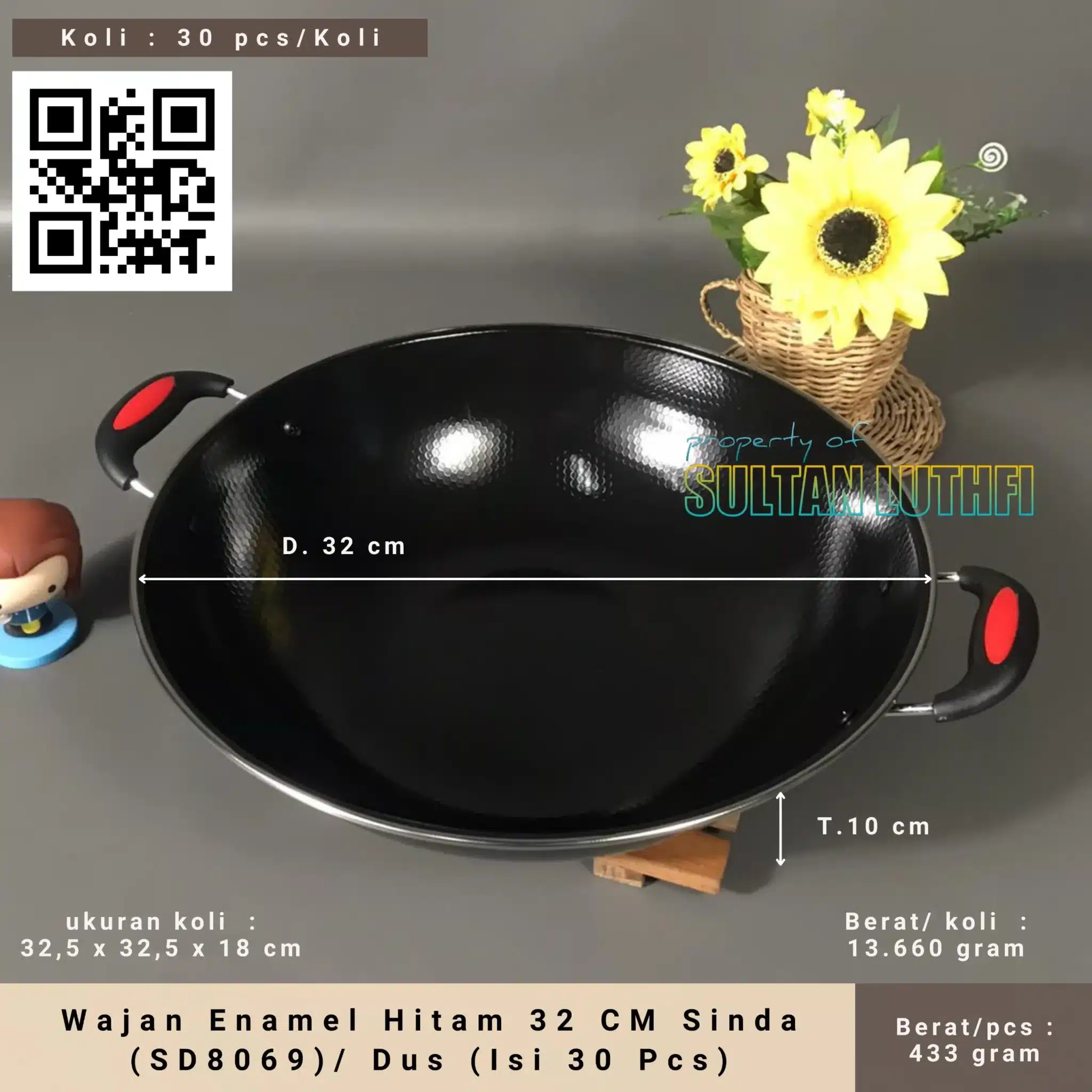 Wajan Enamel Hitam 32 CM Sinda (SD8069)/ Dus (Isi 30 Pcs)